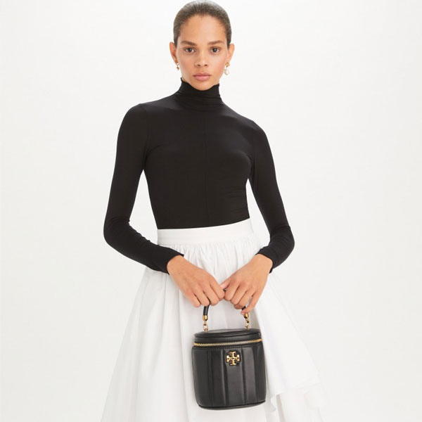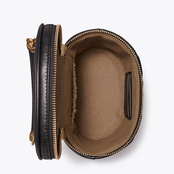 TORY BURCH KiraVanity斜挎包可裝下隨身物件。有兩種背法:用管狀提柄手提,或用可拆卸鏈條背帶斜挎。高16.5cm,長16cm,深11cm·皮革金色配件拉鏈開合管狀提柄,垂直攜帶高度為10cm;可調可拆卸皮革斜挎背帶,垂直攜帶高度為54cm。1個內部後側卡槽化妝包