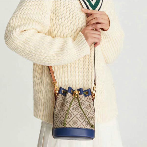 Tory Burch水桶包採用抽繩開合,按住鎖扣上的雙 T 標識按扣即可固定。斜挎時,提柄會自然垂下。每一個設計細節,凸顯實用功能性。內外均設有口袋。