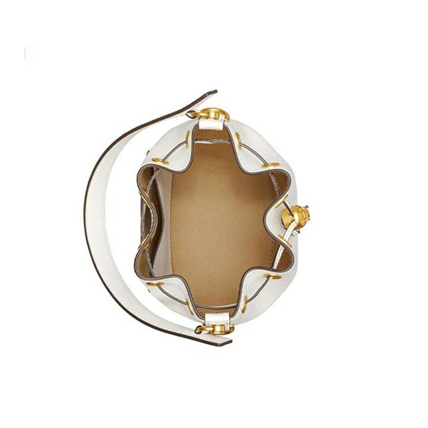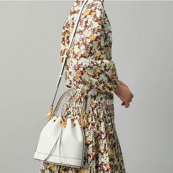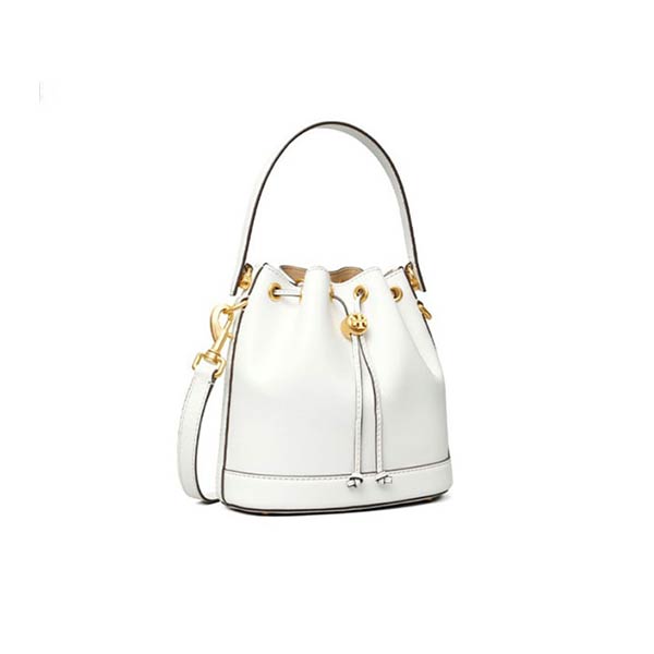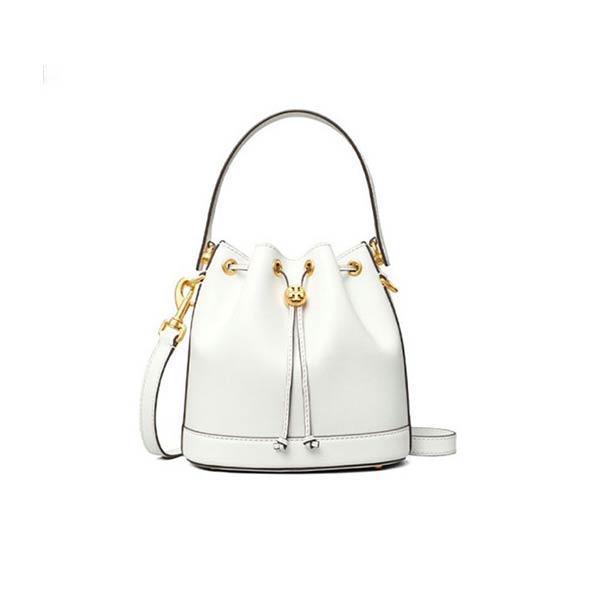 Tory Burch水桶包採用抽繩開合,按住鎖扣上的雙 T 標識按扣即可固定。斜挎時,提柄會自然垂下。每一個設計細節,凸顯實用功能性。內外均設有口袋。