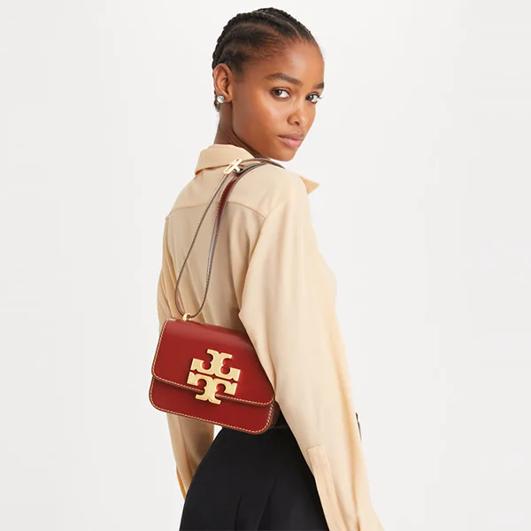 新款 Eleanor TB包袋版型挺括,採用柔軟的意大利皮革製成,以立體感黃銅製成的標誌性 T Logo 呈現誇張比例。邊緣處飾以手工塗漆,與利落線條相互映襯。配以兩用背帶,可單肩包或斜挎,隨心演繹不同造型。