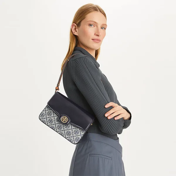 T Monogram 是一種經典圖案,靈感源自傳統的賓夕法尼亞荷蘭絎縫工藝,並慶祝我們的標誌性徽標。該系列詮釋了偉大風格的永恆。 Robinson 多種用途的Tory Burch包採用編織提花和精美皮革製成,邊緣光滑圓滑,經典實用。
