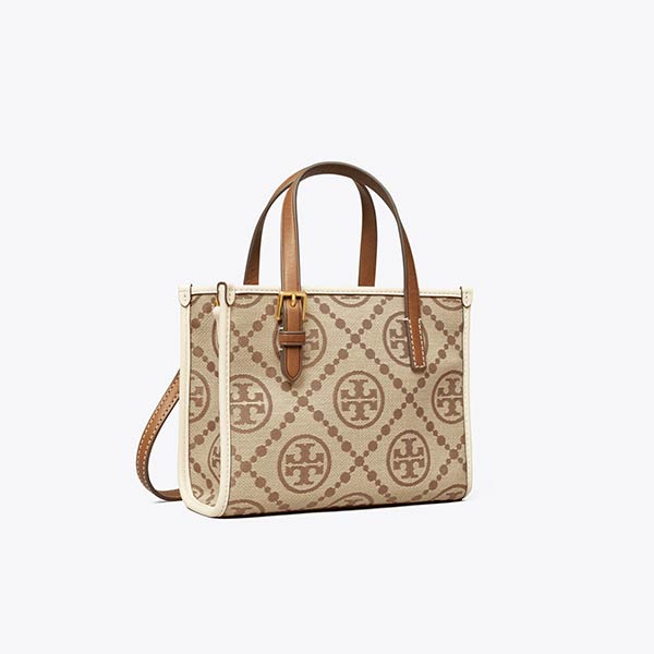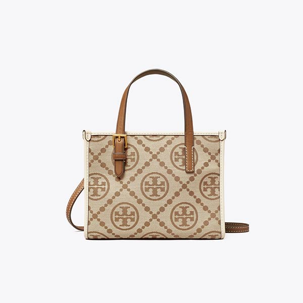 Tory Burch T Monogram 迷你方形托特包 單肩斜挎包 榛子棕