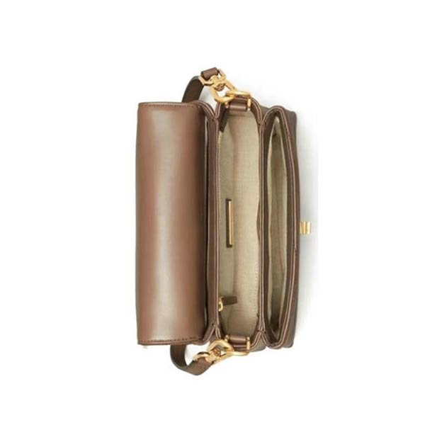 Tory Burch TB Kira Chevron 羊皮鏈條雙肩帶單肩斜挎手提包 中號 女款 褐色