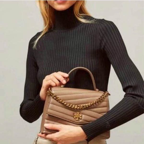 Kira 翻蓋肩背包,外觀精巧,各種場合皆宜,可提供手提/肩背多種背法。本款TB包精選柔軟的人字紋絎縫皮革打造,可拆卸斜挎鏈條背帶設計,配以標誌性的斜面雙 T Logo。