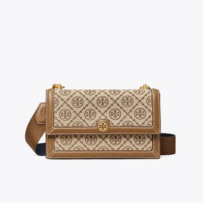 Tory Burch T Monogram 緹花單肩包 斜挎包 棕色 大號/迷你