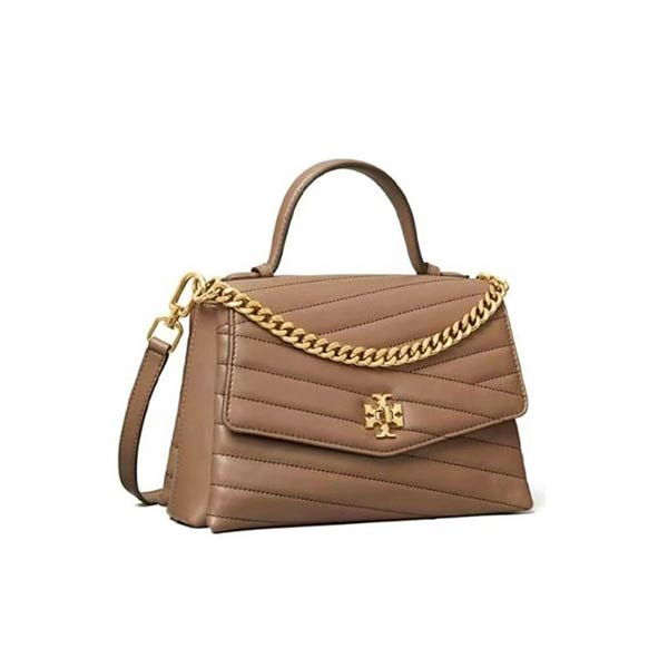 Tory Burch TB Kira Chevron 羊皮鏈條雙肩帶單肩斜挎手提包 中號 女款 褐色