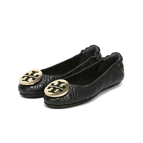 Tory Burch Minnie 旅行芭蕾舞平底鞋,由柔軟納帕皮革組成,可摺疊放入托特包或手提包中。採用防滑橡膠鞋底、多層發泡墊,特殊的倒針縫合結構讓走線更為別緻,將輕鬆時尚、舒適穿著和方便攜帶融為一體。