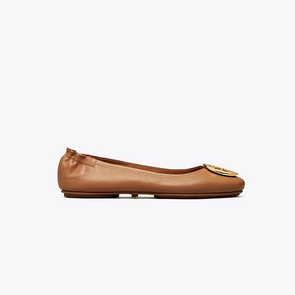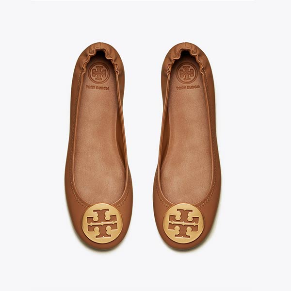 Tory Burch Minnie 旅行芭蕾舞平底鞋,由柔軟納帕皮革組成,可摺疊放入托特包或手提包中。採用防滑橡膠鞋底、多層發泡墊,特殊的倒針縫合結構讓走線更為別緻,將輕鬆時尚、舒適穿著和方便攜帶融為一體。