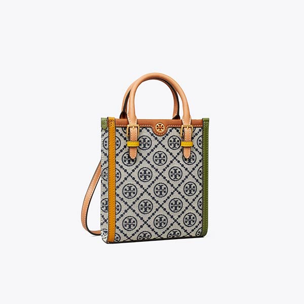 T Monogram 圖案,靈感源自傳統賓夕法尼亞州絎縫設計。該系列選用編織提花布料匠心打造。迷你托特包,以撞色皮革為飾邊,搭配可拆卸斜背帶與可調提柄。採用柔軟的人造絨面革內襯,每一個設計細節,凸顯實用功能性。